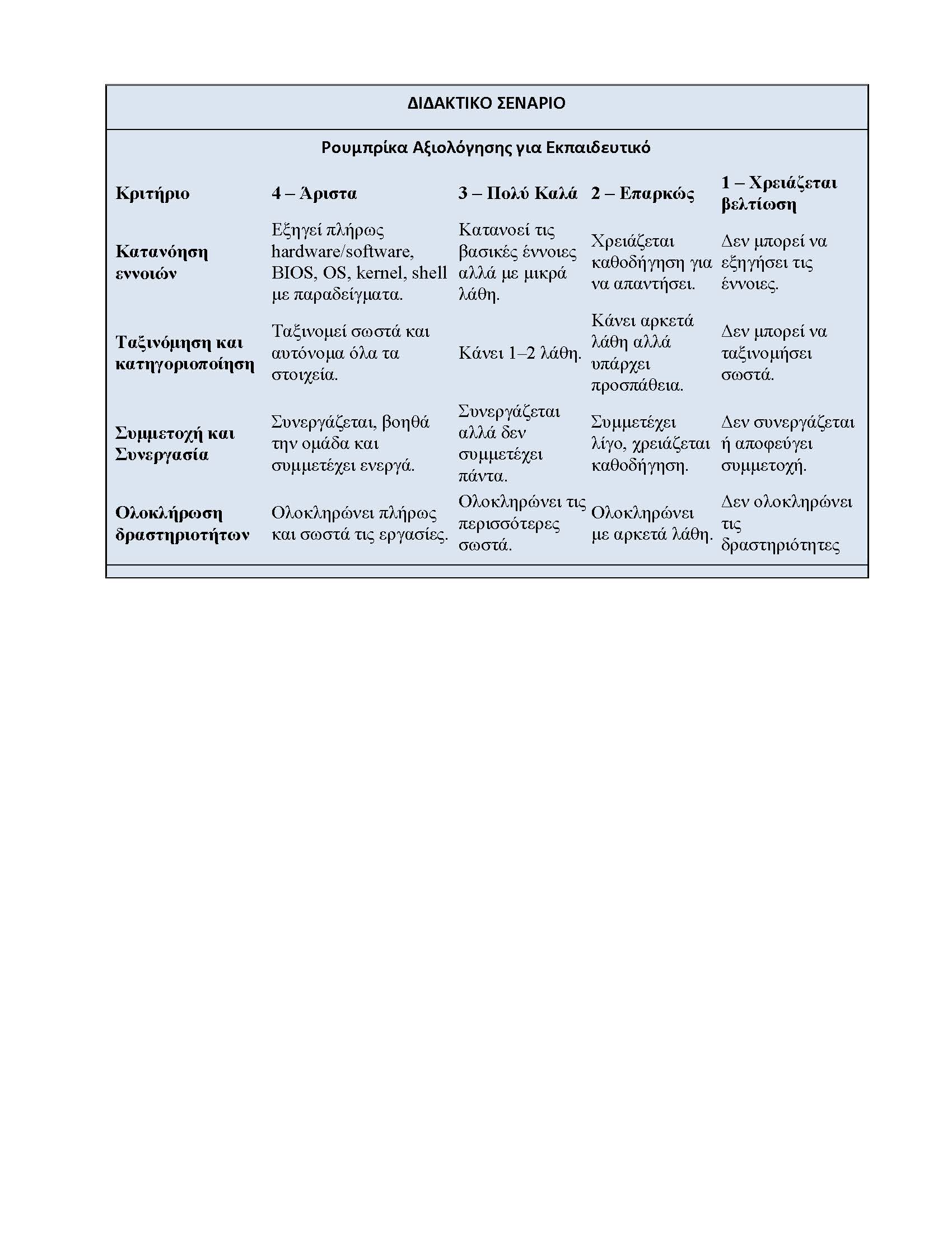 Ρουπρίκα Αξιολόγησης για τις παιδαγωγούς