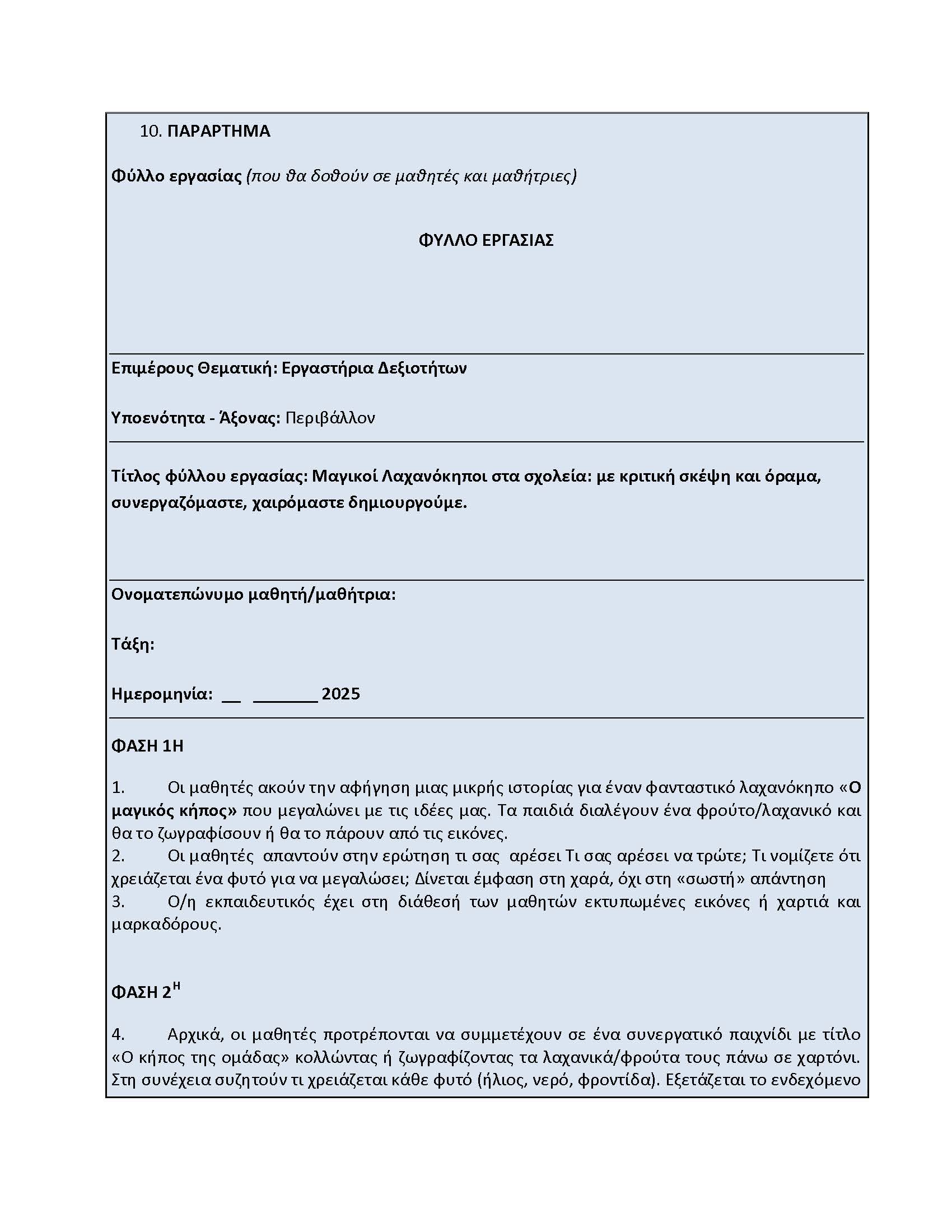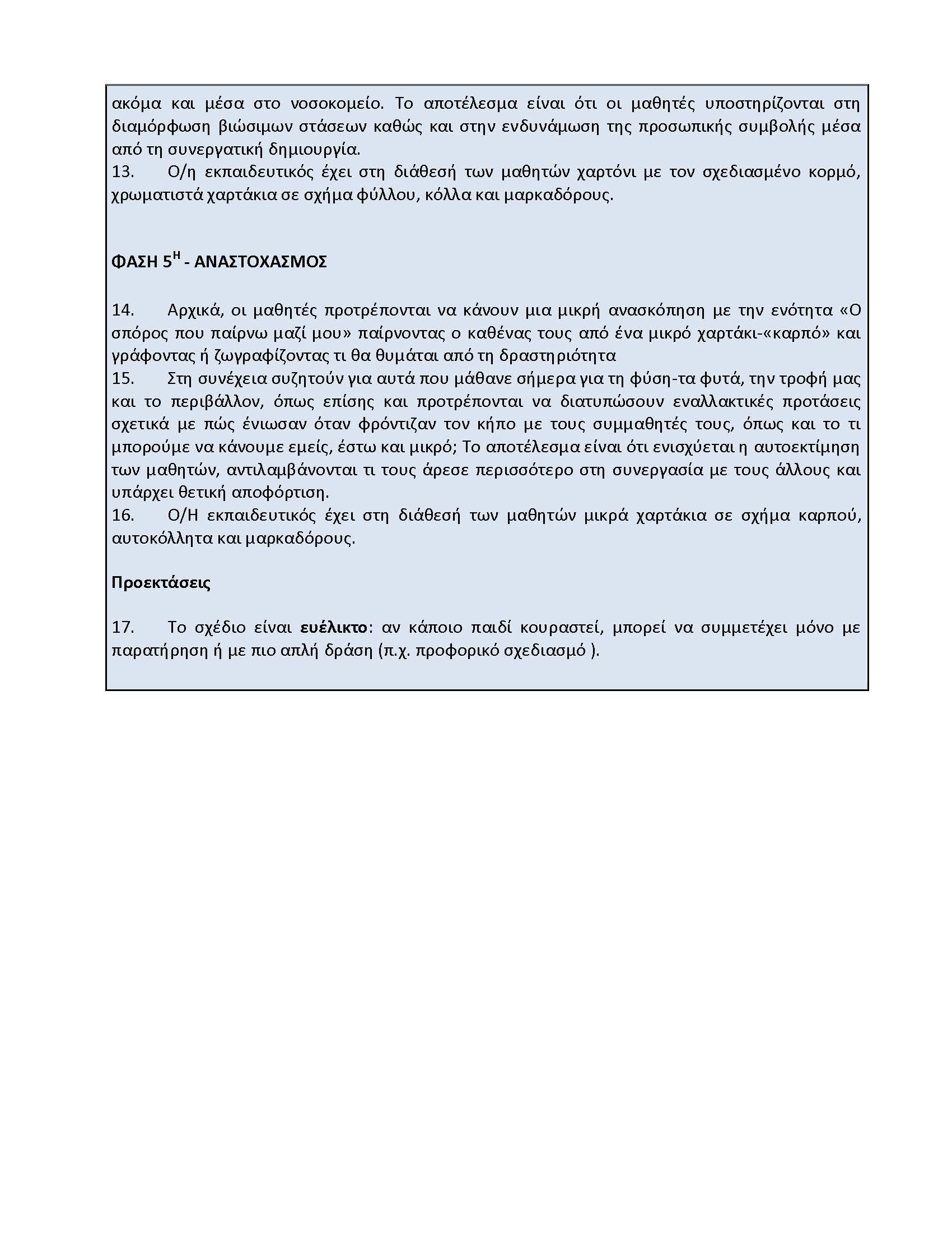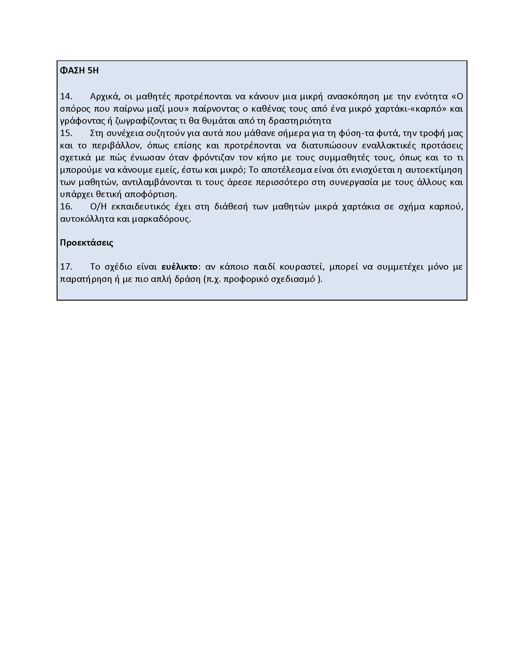 Δεδομένου ότι η ηλικία των μαθητών δεν τους επέτρεπε με άνεση την ανάγνωση και γραφή προτάθηκε ως λύση η συμπλήρωση της σχετικής Ρουπρίκας από τις παιδαγωγούς.