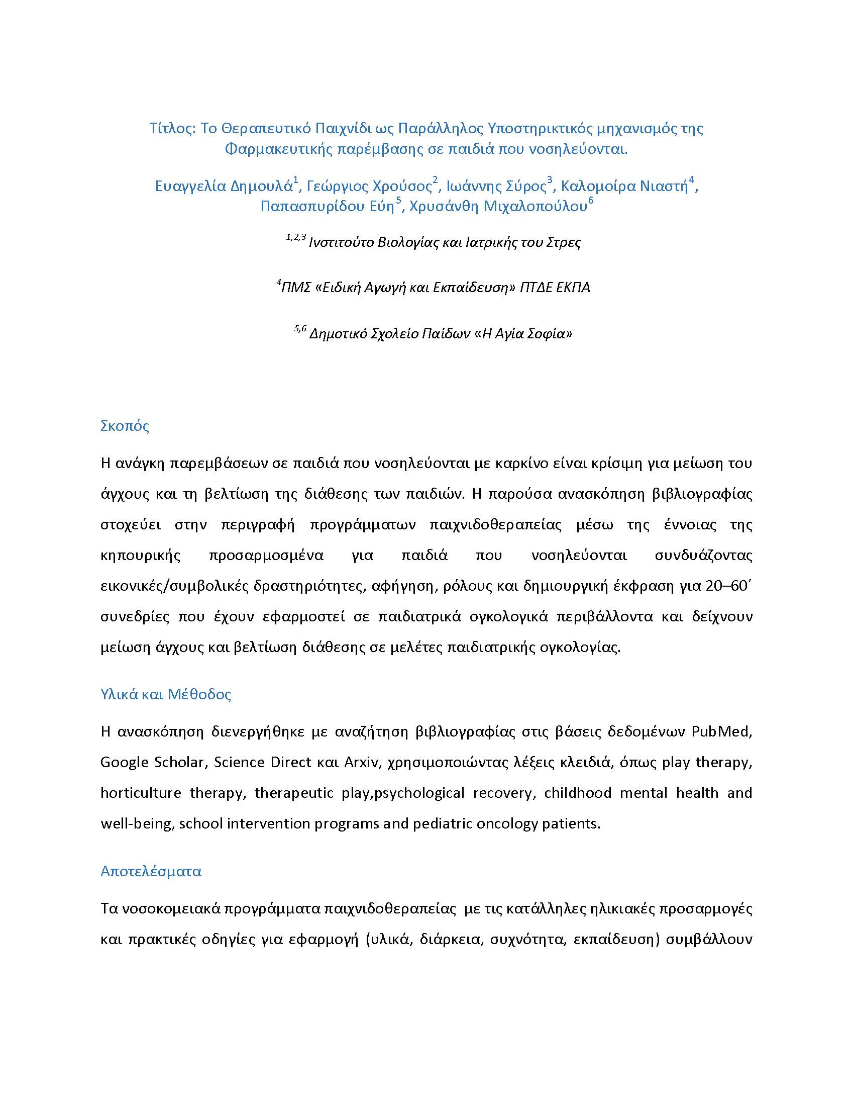 Παρεμβάσεις σε Παιδιατρικούς Πληθυσμούς